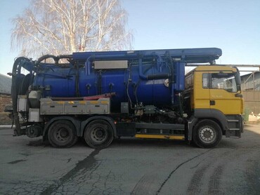 Каналопромывочная машина "KROLL" на базе а/м "MAN". Гидродинамическая прочистка (промывка) водопроводных труб, очистка ливневой канализации и ливнеприемников, откачка очистных сооружений, очистка автомоек, очистка канализационных колодцев, очистка КНС, очистка выгребных ям, очистка резервуаров от нефтепродуктов, очистка жироуловителей.